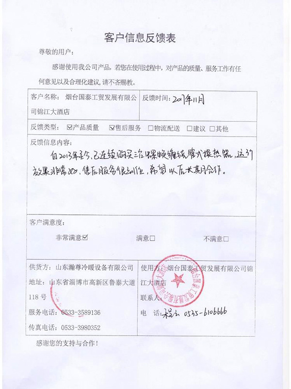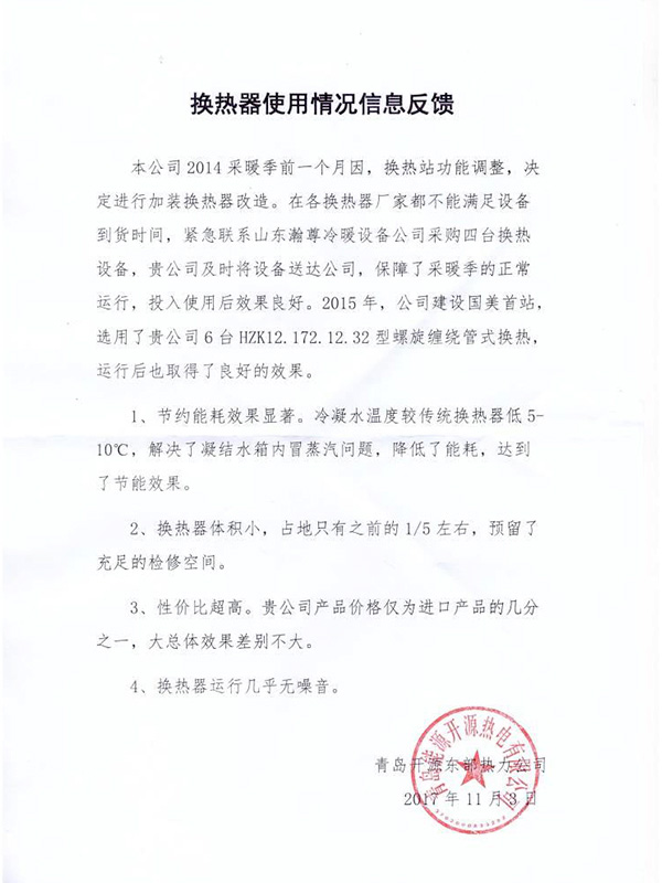 • 山東瀚尊冷暖設(shè)備有限公司坐落在美麗的齊國古都---淄博,是一家以換熱(冷凝)產(chǎn)品研發(fā)、生產(chǎn)、營銷為一體的企業(yè);自2008年以來,通過與中外知名熱力設(shè)備制造商合作以及自主探索和創(chuàng)新,于2010年成功研制生產(chǎn)出了公司第一臺螺旋纏繞管式換熱器;同時,公司依托自身強大的技術(shù)力量和研發(fā)能力,于2016年成功研制生產(chǎn)無死角無菌級雙管板式換熱器,近年來,公司努力走在中國換熱器行業(yè)的前列,致力于創(chuàng)造民族品牌,為用戶提供專業(yè)技術(shù)支持與服務(wù)......